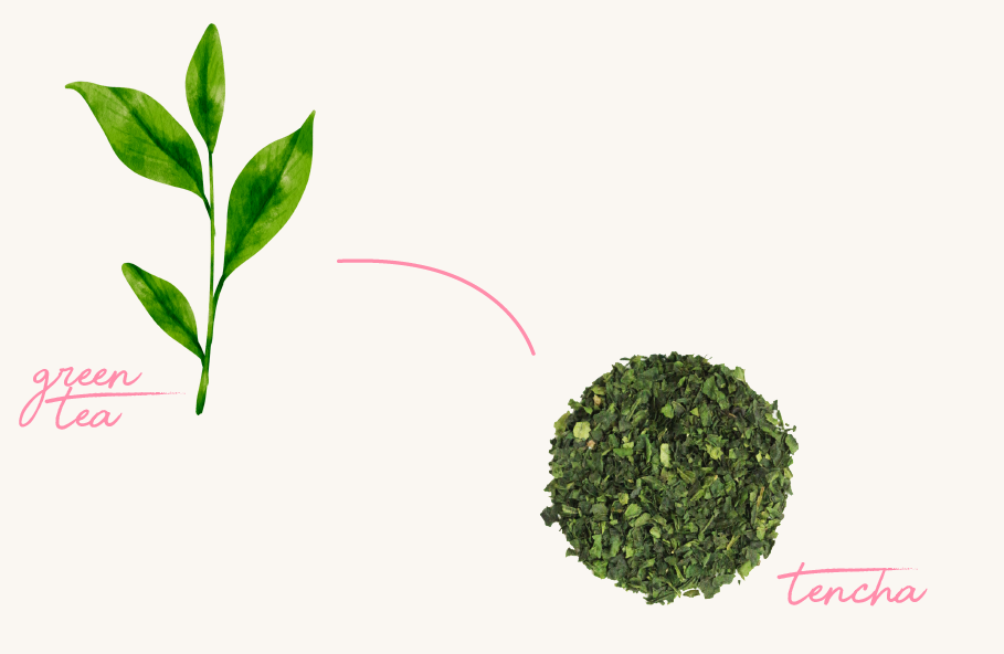 The leaves are laid out flat to dry, then the whole tea leaves will crumble slightly and become what it is called "Tencha"in Japan. "Tencha" or rough tea is the processed leaves with all parts of the leaves still included. Tencha will then be de-veined, de-stemmed, and stone-ground to the fine, bright green, talc-like powder known as Matcha. The flavor of matcha is dominated by its amino acids.